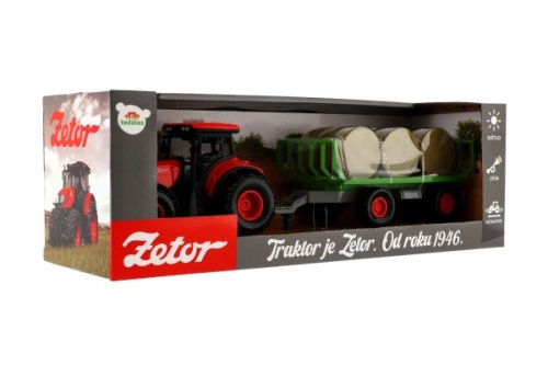 Krásny model poľnohospodárskeho traktora Zetor s dlhoročnou tradíciou, ktorú musí milovať snáď každý. Vyrazte na pole s poriadnym traktorom so svetlom a zvukom! Traktor s vlekom na seno je nepostrádateľný pomocník pre každého malého farmára! Vlek môžeš jednoducho odpojiť a traktor využiť na ďalšie práce. Traktor jazdí na zotrvačník. Stlačením tlačidiel traktor vydáva reálne zvuky a svietia mu svetlá. Hračka je na batérie 3x AG13, ktoré sú súčasťou balenia. Veľkosť traktora s valníkom: 36 cm Rozmer krabice: 39x13x13 cm Vhodné pre deti od 3 rokov