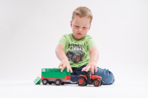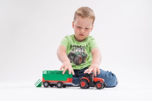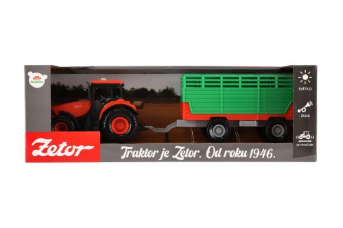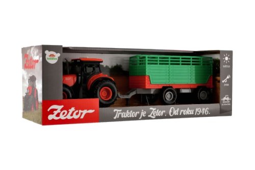 Krásny model poľnohospodárskeho traktora Zetor s dlhoročnou tradíciou, ktorú musí milovať snáď každý. Vyrazte na pole s poriadnym traktorom so svetlom a zvukom! Traktor s vlekom na seno je nepostrádateľný pomocník pre každého malého farmára! Vlek môžeš jednoducho odpojiť a traktor využiť na ďalšie práce. Traktor jazdí na zotrvačník. Stlačením tlačidiel traktor vydáva reálne zvuky a svietia mu svetlá. Hračka je na batérie 3x AG13, ktoré sú súčasťou balenia. Veľkosť traktora s valníkom: 36 cm Rozmer krabice: 39x13x13 cm Vhodné pre deti od 3 rokov