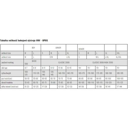 Hokejové traky OPUS 3121 sú určené pre hráčov s výškou postavy 175 - 185 cm. Traky sú vyrobené z elastického materiálu s kovovými prackami a koncovkami z umelej kože.