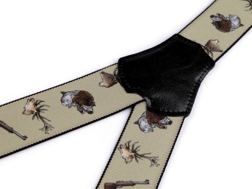 Traky s potlačou lesnej zveri potešia všetkých poľovníkov. Traky bývajú neoddeliteľnou a zároveň praktickou súčasťou ich oblečenia. Sú kvalitné českej výroby, elastický materiál umožňuje pohodlné nosenie. Zadná vsadka z eko kože im dodáva štýlový vzhľad. K nohaviciam sa upevňujú na tri žabky - dve vpredu a jednu vzadu.