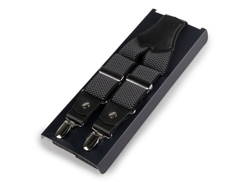 Elegantné pánske traky Angelo Bonetti sú kvalitné českej výroby. Kožené detaily im dodávajú štýlový vzhľad, ich elastický materiál umožňuje pohodlné nosenie. Majú štyri žabky - dve vpredu a dve vzadu. Dĺžku si môžete nastaviť. Dajú sa použiť ako na denné nosenie, tak sú vhodné aj na oblek. Môžete ich nosiť aj k lyžiarskym a iným športovým nohaviciam. Sú kvalitné, vyrobené z polyesteru a elastanu. Majú darčekové balenie v krabičke. Tieto pánske traky budú ideálnym darčekom pre mužov, ktorí majú radi štýl.