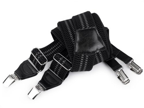 Pánske pruhované traky sú kvalitné českej výroby. Ich elastický materiál umožňuje pohodlné nosenie. Žabky sú zvýraznené prepracovanými detailmi z eko kože, ktoré im dodávajú štýlový vzhľad. K nohaviciam sa traky upevňujú na 4 žabky - dve vpredu a dve vzadu. Dĺžku si môžete nastaviť. Dajú sa použiť ako na denné nosenie, tak sú vhodné aj k lyžiarskym a iným športovým nohaviciam.