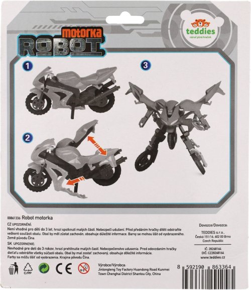 Transformer, z ktorého je možné zostaviť motorka alebo robot. Behom pár jednoduchých krokov budeš mať z motorky robota a naopak. Rozmer motorky: 15 cm Vhodné od 3 rokov