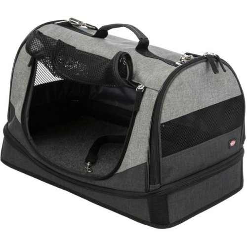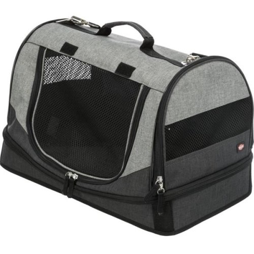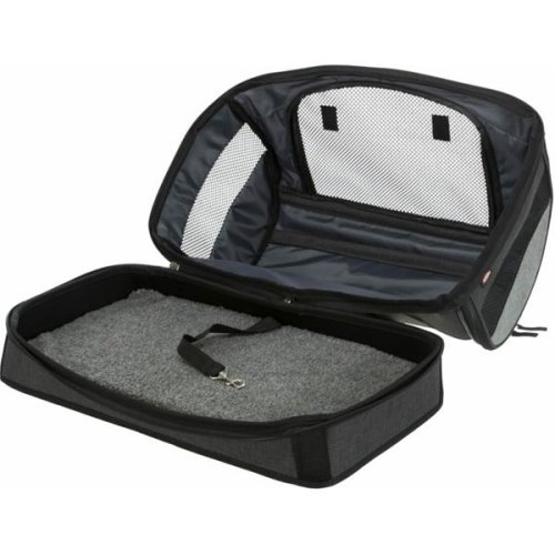 cestovný pelech a taška v jednom možnosť otvorenia na boku a vpredu kryt môže byť úplne odstránený pomocou zipsu po obvode základne s 2 vonkajšími vreckami odnímateľný a dĺžkovo nastaviteľný ramenný popruh integrované krátke vodítko vnútri sieťovina a vetracie otvory pre dobré prúdenie vzduchu vyberateľné polstrované dno koža