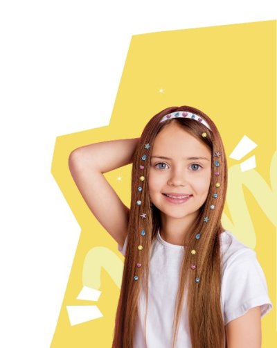 Kreatívna súprava obsahuje aplikátor a 80 lepiacich kamienkov, ktorými si deti môžu ozdobiť nielen vlasy, ale aj denník, puzdro na mobil, peňaženku… Rozmery balenia 22x18,5x4,5 cm Vhodné pre deti od 5 rokov