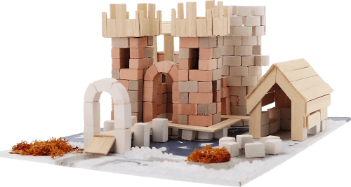 Skladajte tehlu za tehlou, režte a lepte dosky, postupujte od základov až po dokončenú budovu a nakoniec svoj výtvor ozdobte priloženými dekoráciami. Stavajte krok za krokom podľa návodu alebo nájdite a zrealizujte svoje vlastné riešenie. Oživte svoju dokončenú stavbu papierovými figúrkami.