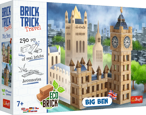 Postavte symbol Veľkej Británie - hodinovú vežu Big Ben zo skutočných tehál a dekoratívnych prvkov. S produktmi z radu Brick Trick Travel sa zoznámite s niektorými populárnymi a obľúbenými pamiatkami a hlavne získate možnosť postaviť si ich od základov. Skladajte tehlu za tehlou, režte a lepte dosky, postupujte od základov až po dokončenú budovu a nakoniec svoj výtvor ozdobte priloženými dekoráciami. Stavajte krok za krokom podľa návodu alebo nájdite a zrealizujte svoje vlastné riešenie. Oživte svoju dokončenú stavbu papierovými figúrkami. Pokiaľ spojíte niekoľko sád TREFL Brick Trick, môžete vytvoriť malebnú dedinku, moderné mesto alebo stredovekú osadu. Stavebnicu je možné používať opakovane (lepidlo je rozpustiteľné vodou). Úroveň obtiažnosti: 5,5 Balenie obsahuje: - viac ako 290 prírodných hlinených tehličiek - drevené dosky - základovú dosku - ozdobné prvky - samolepku - lepidlo - obrázkový návod Stavebnice Brick Trick od výrobcu TREFL zlepšujú zručnosť, rozvíjajú predstavivosť a podporujú sústredenie.