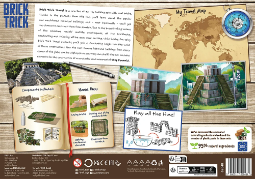S produktmi Brick Trick sa zoznámite s niektorými populárnymi a obľúbenými pamiatkami a hlavne získate možnosť postaviť si ich od základov. Skladajte tehlu za tehlou, režte a lepte dosky, postupujte od základov až po dokončenú budovu a nakoniec svoj výtvor ozdobte priloženými dekoráciami. Stavajte krok za krokom podľa návodu alebo nájdite a zrealizujte svoje vlastné riešenie. Oživte svoju dokončenú stavbu papierovými figúrkami. Pokiaľ spojíte niekoľko sád TREFL Brick Trick, môžete vytvoriť malebnú dedinku, moderné mesto alebo stredovekú osadu. Stavebnicu je možné používať opakovane (lepidlo je rozpustiteľné vodou). Stavebnice Brick Trick od výrobcu TREFL zlepšujú zručnosť, rozvíjajú predstavivosť a podporujú sústredenie.