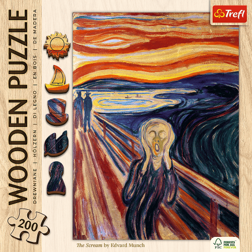 Drevené obojstranné puzzle TREFL s najznámejšími obrazmi od maliarskych majstrov. Puzzle je vyrobené zo silnej drevovláknitej dosky a vyrezané laserom, vďaka čomu sú okraje hladké a dieliky do seba ľahko zapadajú.