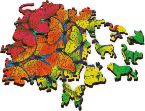 vysoká kvalita a precízne spracovanie laserom, časť dielikov je v klasickom puzzle tvare, časť je tvarovaná nepravidelne, 5 dielikov má špeciálne tvary súvisiace s obrazom, puzzle je obojstranné - z jednej strany obrázok, z druhej strany vzor, zadnú stranu puzzle so vzorom môžete ľubovoľne nafarbiť a vytvoriť tak vlastné umelecké diely, v plastovom balení - úplne bez balenia.