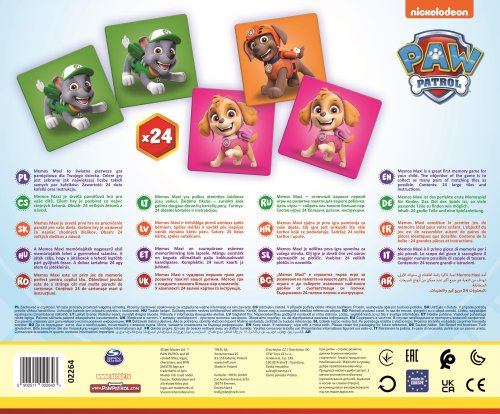 Memos Maxi je skvelá pamäťová hra pre všetky deti. Cieľom hry je pozbierať čo najviac rovnakých žetónov – klasické pexeso s veľkými dielikmi (10 x 10 cm). Balenie obsahuje 24 ks s obľúbenými hrdinami zo seriálu "Tlapková patrola" Rozmer krabice: 37 x 29 x 6 cm Vhodné pre deti od 2 rokov