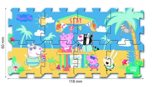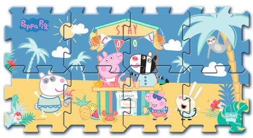 Penové puzzle s krásnymi obrázkami Prasiatka Pepiny (Prasátka Peppy) a jej priateľov. Penová podložka je vyrobená zo špeciálneho materiálu (nejedná sa o klasickú vrúbkovanú EVA penu, ale o materiál podobný silnej karimatke alebo niekoľkovrstvovému mirelonu). Má nadštandardnú hrúbku 1,5 cm a je určená najmä na hranie. Puzzle je mäkké, umývateľné, zdravotne nezávadné, je ľahko manipulovateľné a skladné. Z jednotlivých dielov je možné poskladať kocka, tunel pre autíčka, alebo ho možno použiť ako krásnu dekoráciu na stenu. Z ôsmich samostatných dielov je možné vytvoriť plochu približne 117 x 60 cm. Penové puzzle TREFL PUZZLOPIANKA je vhodné aj ako podložka pri hraní s plastelínou alebo maľovaní farbičkami. Po použití puzzle jednoducho utrite vlhkou handričkou. Odporúčané pre deti od 2 rokov.