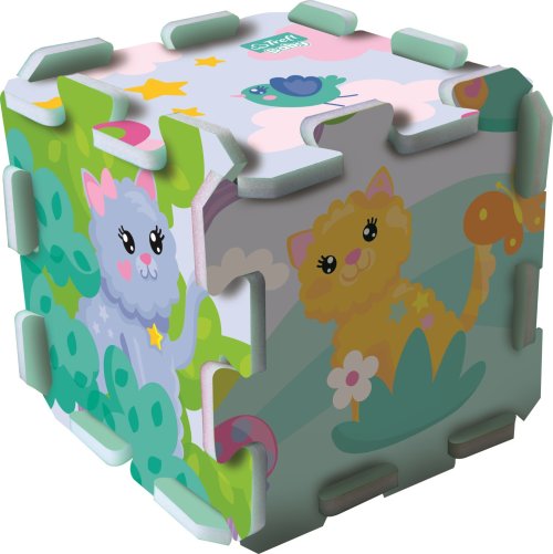 Penové puzzle s motívom roztomilých veselých mačiatok. Penová podložka je vyrobená zo špeciálneho materiálu (nejedná sa o klasickú vrúbkovanú EVA penu, ale o materiál podobný silnej karimatke alebo niekoľkovrstvovému mirelonu). Má nadštandardnú hrúbku 1,5 cm a je určená najmä na hranie. Puzzle je mäkké, umývateľné, zdravotne nezávadné, je ľahko manipulovateľné a skladné. Z jednotlivých dielov je možné poskladať kocka, tunel pre autíčka, alebo ho možno použiť ako krásnu dekoráciu na stenu. Z ôsmich samostatných dielov je možné vytvoriť plochu približne 117 x 60 cm. Penové puzzle TREFL PUZZLOPIANKA je vhodné aj ako podložka pri hraní s plastelínou alebo maľovaní farbičkami. Po použití puzzle jednoducho utrite vlhkou handričkou. Odporúčané pre deti od 2 rokov.