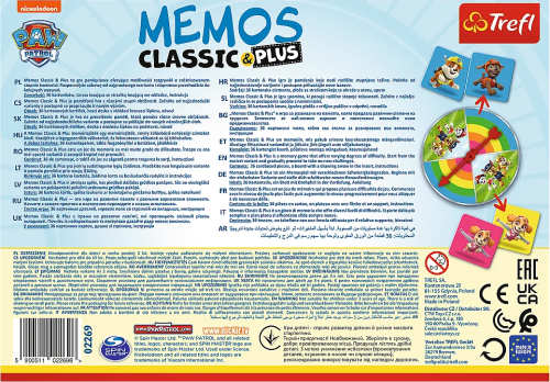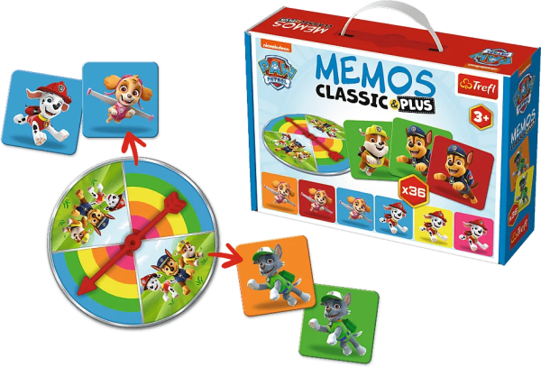Tri pamäťové hry s rôznymi stupňami obtiažnosti. Začnite od najjednoduchšieho variantu a prepracujte sa k novým výzvam. 3 varianty pexesa s hrdinami, Tlapkové patroly veľké kartónové kartičky, zábavné precvičenie pamäte a koncentrácie, balené v krabičke s uchom pre ľahké prenášanie Obsah balenia: 36 kartičiek, žrebovacia šípka, návod