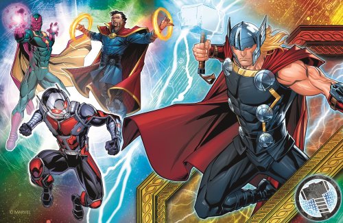 Mini-Puzzle (dieliky 2,2 cm, balené v malej krabičke) zo série Avengers. Rozmer zloženého puzzle cca 20 x 13 cm