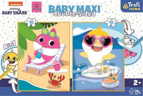 Štyri hry v jednom produkte! 2 puzzle s 10 veľkými dielikmi, vhodné pre najmenšie deti (od 2 rokov) Na zadnej strane každého puzzle je omaľovánka s obľúbenými animovanými postavičkami.