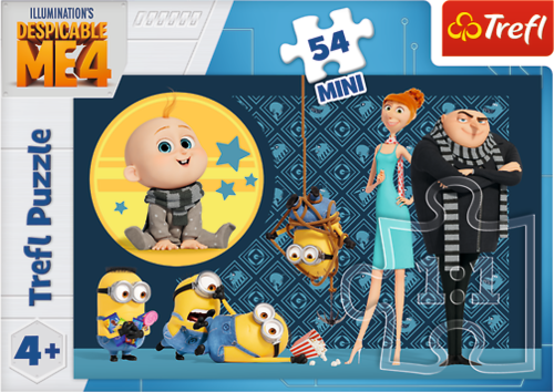 Mini-Puzzle (dieliky 2,2 cm, balené v malej krabičke) z animáku Ja, zloduch 4. Rozmer zloženého puzzle cca 20 x 13 cm
