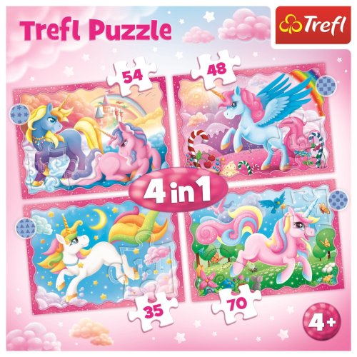 Progresívne puzzle s rôznou obtiažnosťou - 4 puzzle s 35, 48, 54 a 70 dielikmi. Odporúčané pre deti od 4 rokov. Rozmer zloženého puzzle cca 28,5 x 20,5 cm
