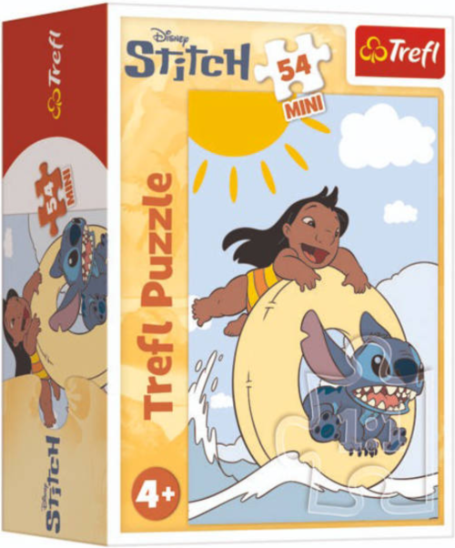 Mini-Puzzle (dieliky 2,2 cm, balené v malej krabičke) z animáka Lilo a Stitch. Rozmer zloženého puzzle cca 20 x 13 cm