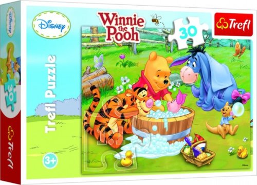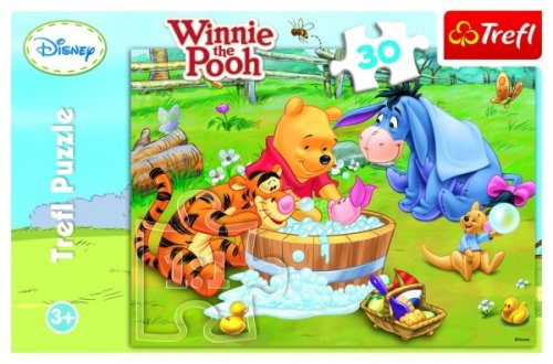 Puzzle obsahuje 30 dielikov s postavami zo série "Medvedík Pú". Veľkosť zloženého obrázku je 27 x 20cm. Puzzle zdokonaľujú sústredenie, jemnú motoriku, orientáciu v priestore i fantázii vášho dieťaťa a to si tak popri skvelej zábave zdokonaľuje svoje kognitívne aj kreatívne schopnosti. Rozmery balenia 21 x 14 x 4 cm. Vhodné pre deti od 3 rokov.