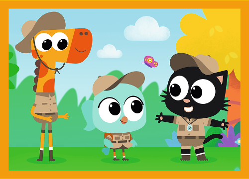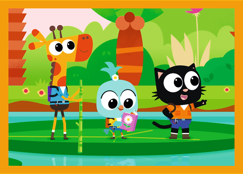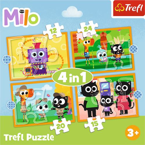 Progresívne puzzle s rôznou obtiažnosťou - 4 puzzle s 12 - 24 dielikmi, s vyšším počtom dielikov sa zmenšuje ich veľkosť. Rozmer zloženého puzzle cca 28,5 x 20,5 cm
