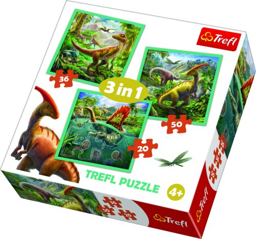 Detské puzzle s tromi obrázkami s motívom dinosaurov. Progresívne puzzle s rôznou obtiažnosťou - 3 puzzle s 20, 36 a 50 dielikmi postupne vedú k zdokonaľovaniu dieťaťa pri skladaní a zvyšovaní obtiažnosti. Rozmery balenia 28 x 28 x 6 cm. Vhodné pre deti od 3 rokov.