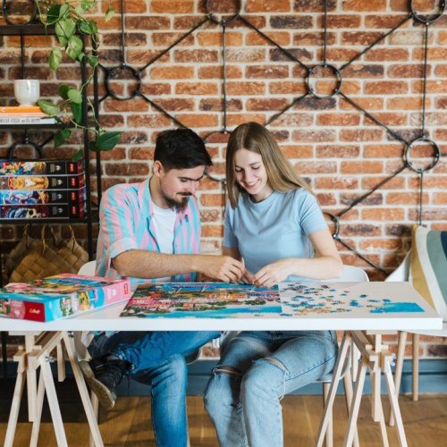Nadštandardná Premium Plus kvalita - vysoko kvalitný kartón, precízne spracovanie a unikátne tvary dielikov, ktoré zapadnú iba tam, kam patria. Puzzle dieliky držia pri sebe - vďaka výnimočnej hrúbke kartónu je možné zložené časti alebo celé poskladané puzzle pohodlne premiestňovať bez toho, aby sa rozsypalo. Vnútri balenia je vložená predloha, ktorá uľahčí skladanie. Dôraz na ekológiu - krabica je iba prelepená samolepkami, bez vrchnej fólie. Séria je certifikovaná FSC, čo znamená, že materiály použité na výrobu puzzle pochádzajú zo zodpovedne obhospodarovaných lesov.