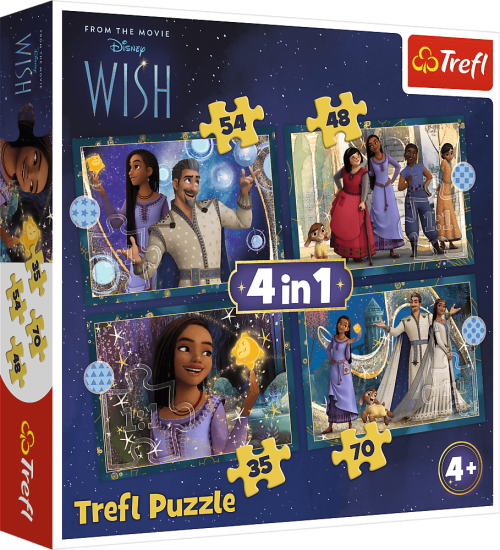 Progresívne puzzle s rôznou obtiažnosťou - 4 puzzle s 35 - 70 dielikmi, s vyšším počtom dielikov sa zmenšuje ich veľkosť. Rozmer zloženého puzzle cca 28,5 x 20,5 cm