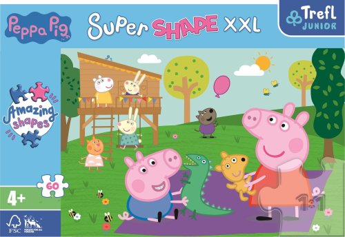 TREFL Puzzle Super Shape XXL Prasiatko Pepina: Hranie s bračekom 60 dielikov