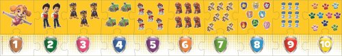 zoznamuje deti s číslami a počítaním obrázkov viac možností skladania - dieťa môže iba priraďovať čísla k obrázkom, skladať čísla alebo samotné obrázky do radu za sebou, alebo zložiť jedno veľké puzzle dohromady. obľúbené postavičky známe z detského animovaného seriálu Tlapková patrola skladania rozvíja jemnú motoriku, logické myslenie a trpezlivosť