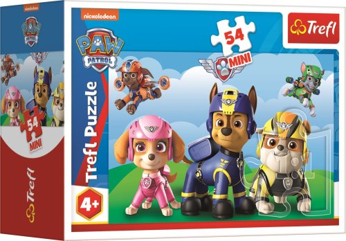 Mini-Puzzle (dieliky 2,2 cm, balené v malej krabičke) zo série Tlapková patrola. Rozmer zloženého puzzle cca 20 x 13 cm