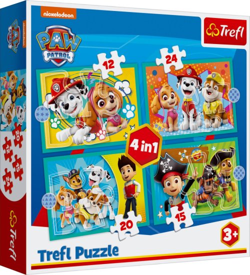Puzzle s motívom obľúbeného seriálu Tlapková patrola. Štyri samostatné puzzle s rôznym počtom dielikov – 12, 15, 20 a 24 – postupne vedú k zdokonaľovaniu dieťaťa pri skladaní a zvyšovaní obtiažnosti. Rozmery balenia 28 x 28 x 6 cm. Vhodné pre deti od 3 rokov.