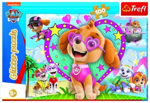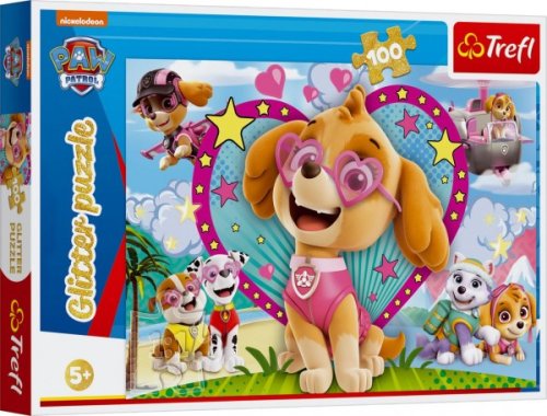 V žiare Sky je puzzle skladajúci sa zo 100 dielikov, určená najmä pre malých fanúšikov animovanej produkcie „Paw Patrol/Tlapková patrola“. Puzzle je pokryté jemným zlatým leskom, vďaka ktorému sa jednotlivé dieliky nádherne trblietajú a vytvárajú úžasný dojem. Po zostavení puzzle bude vytvorený obrázok s rozmermi 48 x 34 cm. Puzzle je vyrobené z vysoko kvalitných prírodných materiálov s použitím špeciálneho kalandrovaného papiera odrážajúceho svetlo, vďaka ktorému sa skladanie stáva ešte príjemnejším a jednoduchším. Rozmery balenia 33 x 23 x 4 cm. Vhodné pre deti od 5 rokov