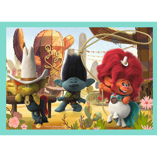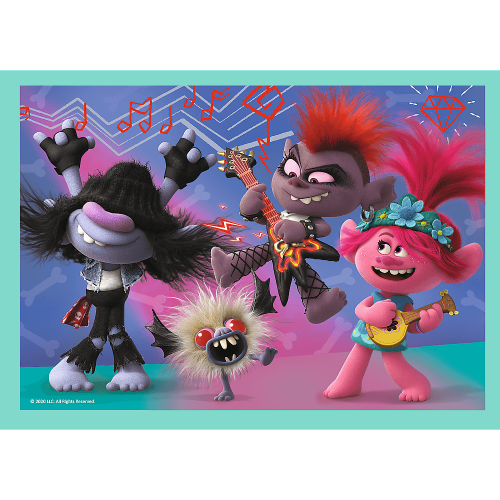 Detské puzzle TREFL so štyrmi obrázkami Trollíkov. Progresívne puzzle s rôznou obtiažnosťou - 4 puzzle s 35, 48, 54 a 70 dielikmi. Odporúčané pre deti od 4 rokov. Rozmer zloženého puzzle cca 28,5 x 20,5 cm