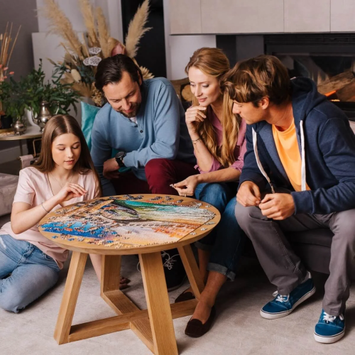 Ako na to? Akonáhle poskladáte puzzle, opatrne oddeľte okrajové časti od zloženého motívu. Prostredné časti zložených puzzle napojte jeden k druhému podľa vlastného priania. Nakoniec pripojte v potrebných miestach okrajové dieliky a je hotovo. Spojením štyroch tisícpäťstovkových puzzle máte razom originálnu "šesťtisícovku". Ilustračné video