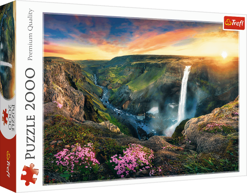 Puzzle s motívom vodopádu Háifoss - Island. Puzzle sa skladá z 2000 dielikov, v krabici.
