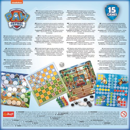Set klasických hier pre celú rodinu s obľúbenými hrdinami pri Tlapkovej patrole. Sada obsahuje tradičné hry: Človeče, nehnevaj sa!, Mlyn Hady a rebríky, Dámu a ďalšie hry poznáme po celom svete. Obsah balenia: