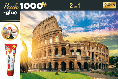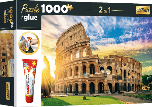 Súprava 2v1: puzzle + lepidlo. Tekuté lepidlo na vodnej báze s aplikátorom trvalo zlepí až 4 poskladané tisícdielkové puzzle. Nanáša sa priamo na obrázok penovou hubkou, ktorá je umiestnená pod uzáverom (uzáver je nutné sňať, nie odskrutkovať). Lepidlo vystačí orientačne na 1,5 m², čo zodpovedá 4000 dielikov. Objem 70 ml. Návod na použitie lepidla: Položte puzzle na rovný a pevný povrch. Pritlačte hubku na hornú (obrázkovú) stranu zloženého puzzle a bez toho, aby ste ju zdvíhali, rovnomerne nanášajte lepidlo na celú plochu. Aplikátor po použití opláchnite vodou a puzzle nechajte zaschnúť. Rozmer zloženého puzzle cca 68,3 x 48 cm