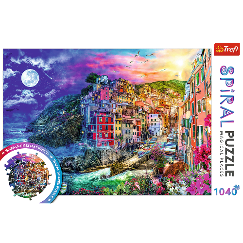 Skočte do víru zábavy! Objavte Spiral puzzle TREFL so špeciálnym tvarom dielikov, ktoré sa skladajú do špirály. Rozmer zloženého puzzle cca 68,3 x 48 cm