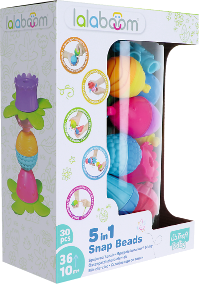 Hračka pomáha rozvíjať všetky zmysly, predovšetkým zrak, sluch a hmat. Vďaka hre s korálkovými blokmi sa dieťa učí vo vlastnom tempe. Spojovacie korále majú rôzne farby, tvary a štruktúru - poskytujú rôznorodé dotykové vnemy. Lalaboom rastie spolu s dieťaťom a podporuje jeho rozvoj na viacerých úrovniach. Korále pomáhajú zdokonaľovať presnosť pohybov rúk, dôkladnosť uchopovania prstami a taktiež otočné pohyby zápästia. Spojovacie bloky cvičia zrakovo-pohybovú koordináciu, rozvíja kreativitu a priestorovú predstavivosť.