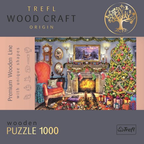 Drevené obojstranné puzzle TREFL z prémiového radu Wood Craft Origin so špeciálne tvarovanými dielikmi, ktoré sú inšpirované Vianocami. Puzzle je vyrobené zo silnej drevovláknitej dosky a vyrezané laserom, vďaka čomu sú okraje hladké a dieliky do seba ľahko zapadajú.