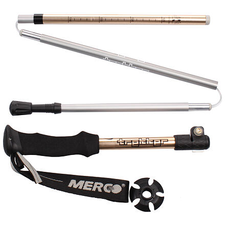 Skladacia trekingová palica Merco Trekker Vám poskytne pri chôdzi potrebnú oporu a väčší komfort počas Vašich výletov do prírody. Turistická palica Trekker je vyrobená z hliníkovej zliatiny 7075, má nastaviteľnú dĺžku v rozmedzí 106 – 125 cm, textilné pútko a na konci je osadená karbidovým hrotom opatreným odnímateľnou gumovou koncovkou s protišmykom. Vďaka unikátnemu systému skladania pomocou vnútorného lanka palicu kedykoľvek rýchlo zložíte aj rozložíte a dáte do batohu, pokiaľ ju práve nepoužívate. Stačí iba zasunúť dva spodné diely do seba a vysunúť tretí diel, vďaka čomu sa lanko napne a palicu tak zostane zložená. Rozmery rozloženej palice sú 35 x 10 x 4 cm, hmotnosť palice je iba 280 g. Súčasťou palice je aj praktický obal.