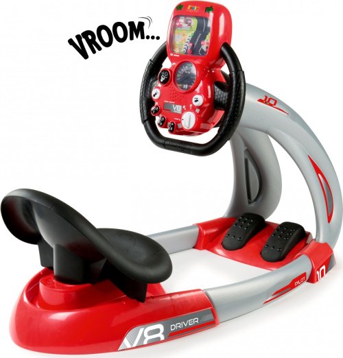 Trenažér pre malých vodičov. Nastaviteľné sedadlo, mechanické pedále, elektronický volant. Svetelné aj zvukové efekty. Rozmery: 85 x 50 x 36 cm (D x V x H). Max. nosnosť 25 kg.