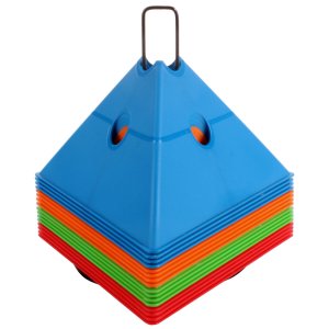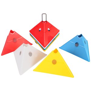 Súprava šestnástich vytyčovacích mét so stojanom pre jednoduché prenášanie. Multifunkčné vytyčovacie méty Merco Tri Corners sú praktickou pomôckou trénerov rôznych športových odvetví. Mety slúžia na vyznačenie tréningovej plochy a vytvorenie agility prekážok v spojení s plastovými tyčami s priemerom 25 mm. Plastová méta má výšku 13,5 cm, dĺžku strany 24 cm a hmotnosť približne 75 g. Úvodný obrázok je iba ilustratívny a farby v sade sa môžu líšiť. Jednotlivé kombinácie nemožno vyberať, dodávame podľa aktuálnych skladových zásob.