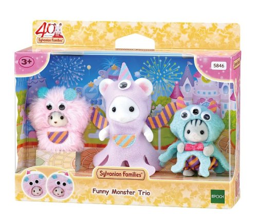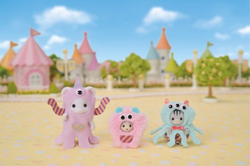 Vydajte sa do zábavného parku Sylvanian na prehliadku kostýmov. Oblečení do vtipných kostýmov špeciálne pre túto príležitosť, baby Marshmallow myška Katherine, má na sebe fialový kostým mimozemšťana, baby šedý kocúrik Ashton Harvey, je trojoká chobotnica a baby husky Linnea, je chlpaté ružové monštrum. Každý kostým má zábavné pohyblivé oči. Hračky Sylvanian Families rozvíjajú predstavivosť a povzbudzujú deti k hraniu rolí. Hra s figúrkami rozvíja kreativitu a učí emóciám vytváraním a rozprávaním príbehov založených na každodenných zážitkoch a pozorovaní sveta. Vyznačujú sa najvyššou kvalitou a výnimočným dôrazom na detaily. Figúrky Sylvanian Families sú pokryté mäkkým semišom, majú pohyblivé končatiny a hlavu. Oblečenie je možné z figúrok zložiť a vymeniť za iný outfit. Balené v krabičke. Rozmery balenia: 13 x 16 x 4,5 cm. Vek: 3+