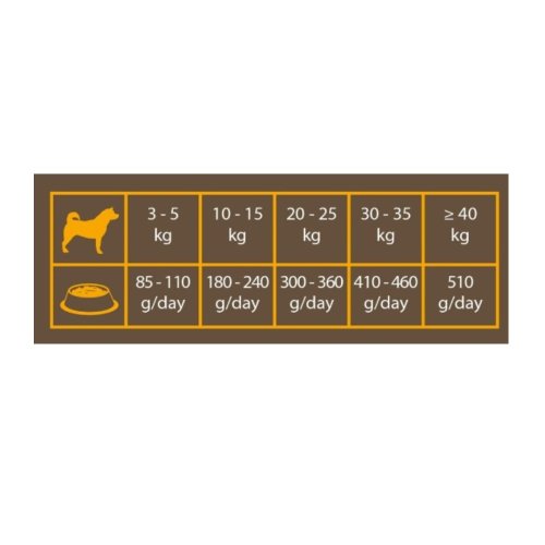 Spôsob podávania: zmenu krmiva je potrebné vykonávať postupne po dobu 7 dní. Podávajte dennú kŕmnu dávku najlepšie rozdelenú na 2 až 3 porcie denne, a to vždy v rovnakom čase. Kŕmna dávka sa môže líšiť v závislosti na aktivite, psom plemene a podmienkach okolitého prostredia. Pes musí mať vždy k dispozícii čistú a čerstvú vodu.