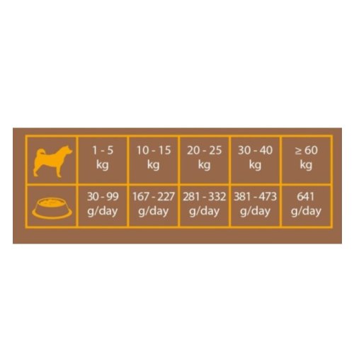 Zloženie: dehydratovaný zvierací proteín (hydina 10 %), kukurica, pšenica, spracované čerstvé kura 10 %, ryžové otruby, hydinový olej, ryža 5 %, hydrolyzát z hydinovej pečene, rohovník (svätojánsky chlieb) látky, jablká 1 000 mg/kg, čučoriedky 1 000 mg/kg, kvasnice (500 mg/kg).