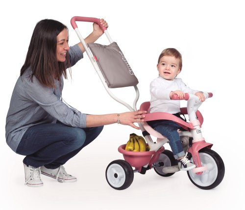Šliapacia trojkolka pre dievčatká má kovový rám, odnímateľnú vodiacu tyč, bezpečnostný ochranný rám a pás, možnosť zablokovania vodných bicyklov, výklopný plastový košík, nastaviteľné ergonomické sedadlo na 2 pozície, plastové kolieska s tichou úpravou. Praktická taška na vodiacej tyči. Nosnosť 50 kg. Rozmery 68 x 101 x 52 cm.