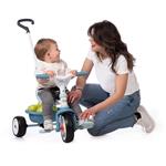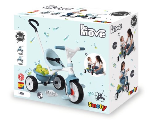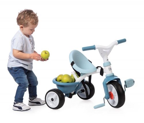 Šliapacia trojkolka Smoby Be Move je ideálnou voľbou pre deti od 15 mesiacov do 3 rokov . Má pevný kovový rám, ktorý unesie až 50 kg. Vodiacu tyč výškovo nastavíte v 3 úrovniach (maximálne 95 cm) a navyše ju v prípade potreby môžete kedykoľvek odňať. Ergonomické sedadlo je vybavené bezpečnostným pásom a ľahko ho nastavíte v dvoch pozíciách. Trojkolka má tiež protišmykové pedále , pri ktorých je možné zablokovať šliapanie. Nechýbajú ani tiché kolieska alebo výklopný plastový košík v zadnej časti.