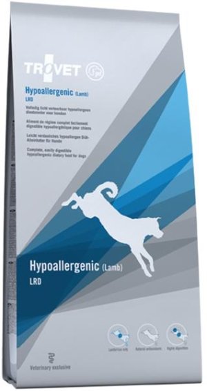Zloženie: ryža, jahňacie mäso, masť, hydrolyzovaná hydina pečeň, repné rezne, rybí olej. Neobsahuje žiadne umelé príchute, farbivá ani arómy. Analytické zložky: hrubý proteín 20,0 %, hrubé oleje a tuky 16,0 %, hrubý popol 6,3 %, hrubá vláknina 1,0 %, vlhkosť 8,0 %, vápnik (Ca) 1,3 %, fosfor ( P) 0,9 %, draslík (K) 0,3 %, sodík (Na) 0,2 %, kyselina linolová 2,2 %, kyselina Alfa linolénová 0,09 %, uhľohydráty 48,7 %. Nutričné doplnkové látky: vitamíny: Vitamín A 25000 MJ/kg, Vitamín D3 2000 MJ/kg, Vitamín C 250 mg/kg, Vitamín E 150 mg/kg. Stopové prvky: síran železnatý monohydrát (Fe) 75 mg/kg, síran zinočnatý monohydrát (Zn) 62 mg/kg, oxid mangánatý (Mn) 15 mg/kg, pentahydrát síranu meďňatého (Cu) 5 mg/kg, jodičnan vápenatý bezvodý I) 0,6 mg/kg, seleničitan sodný (Se) 0,1 mg/kg. Obsahuje antioxidanty. Dávkovanie: Najlepšie je kŕmiť diétou TROVET LRD po dobu 3 - 8 týždňov. Po vymiznutí príznakov intolerancie je možné podávať túto diétu po neobmedzene dlhú dobu. Pred podávaním sa odporúča vyšetrenie veterinárom. Musí byť zaistený dostatok pitnej vody počas podávania.